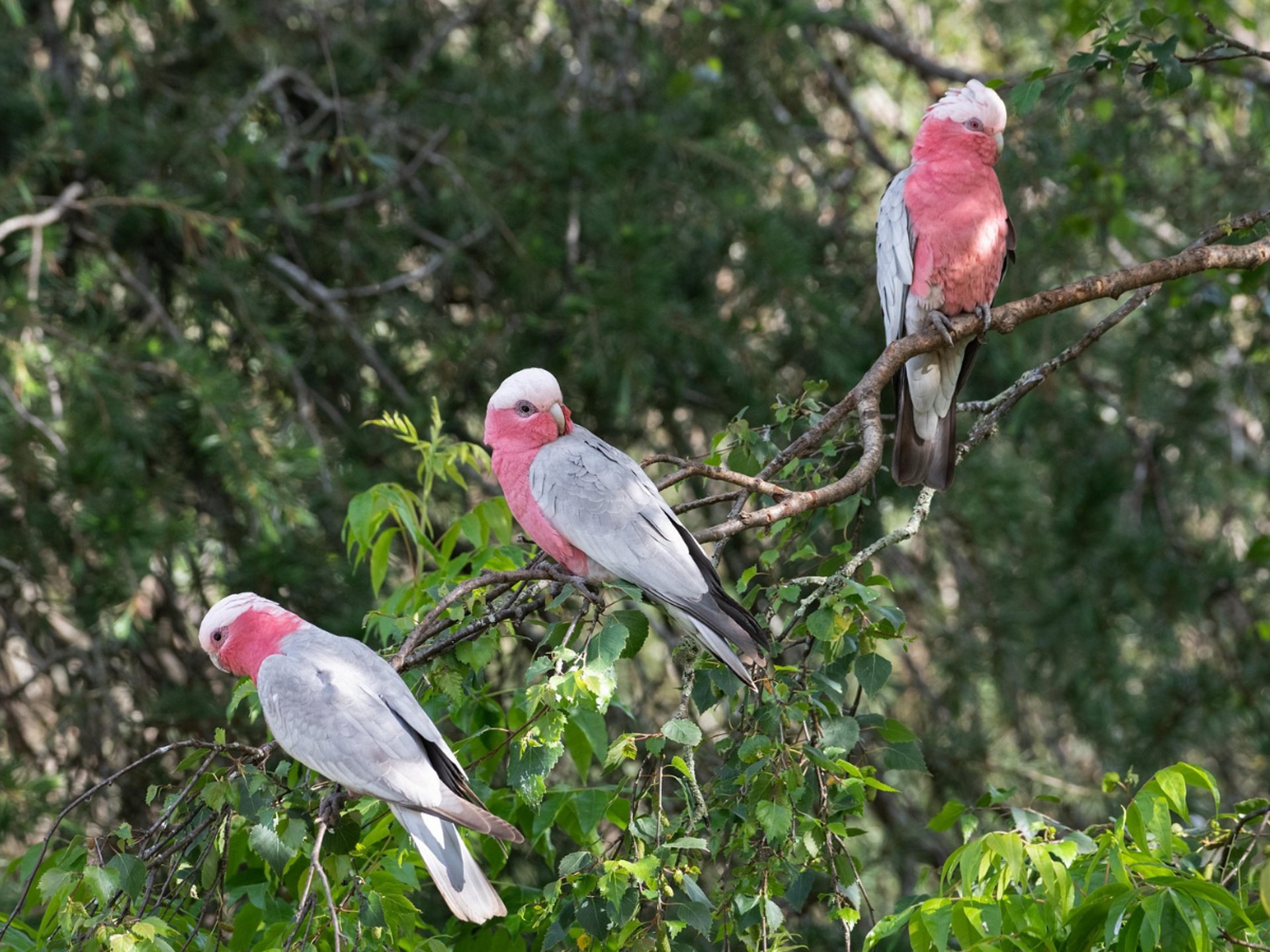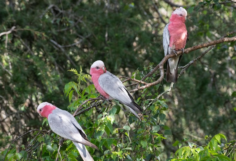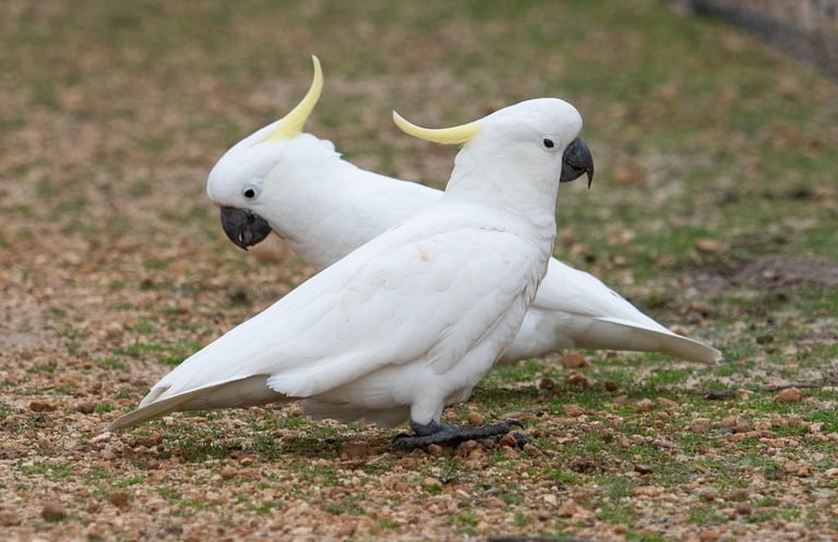 Las cacatúas blancas y los galahs rosados y grises son puro espectáculo. Vuelan en bandadas enormes, se posan en cables y árboles y se pasan horas gritando como si estuvieran cotilleando. Son preciosos, pero te aviso: el ruido que hacen cuando se juntan puede dejarte sorda.Son muy inteligentes y pueden aprender trucos, abrir cerraduras simples o imitar sonidos humanos. Curiosidad divertida: en Australia llamar a alguien “galah” significa que es un poco payaso.